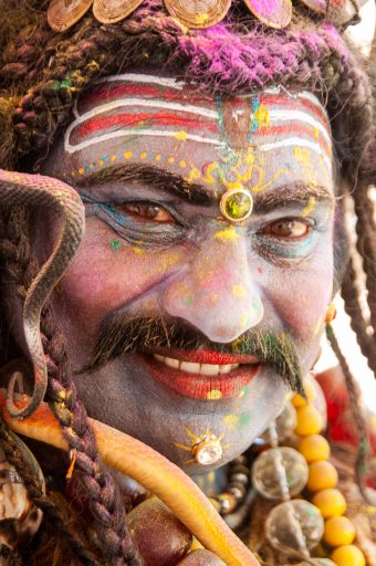 Op een van de ghats (trappen naar de Ganges) ontmoette we Baba 2. Een jonge gozer die al vanaf zijn 16de een zwervers bestaan had. Heel de dag is tie een beetje achter ons aan gelopen en heeft ons meegenomen naar een Shiva tempel op de crematie ghat, een tempeltje waar misschien 10 man in kon. Nou wat daar allemaal gebeurde; het leek wel een sekte. Eerst was de priester een uur de tempel aan het versieren voor de ceremonie: op alles bloemetjes leggen in bepaalde patronen, beelden beschilderen, allemaal brouwsels maken etc. Wat een werk en dat 2 keer per dag elke keer weer.