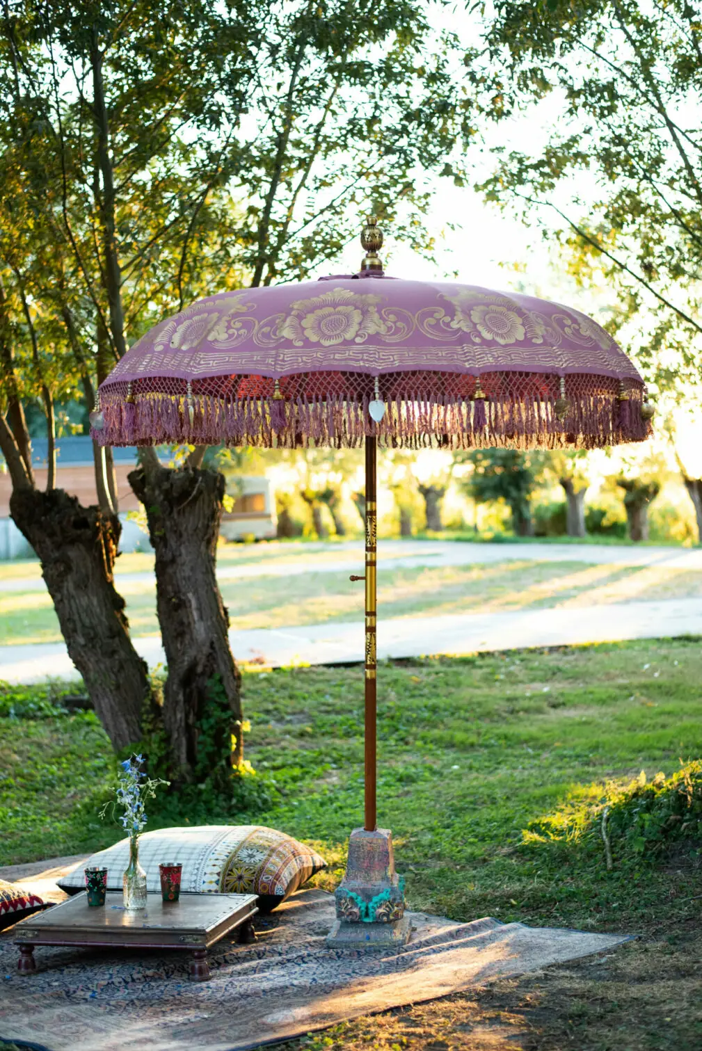 Vind jij het leuk jouw terras of balkon om te toveren tot een Oosters paradijs? Denk dan eens na over het aanschaffen van onze kleurrijke, handgemaakte parasols uit Bali. Deze parasols toveren elke ruimte om tot een ware eyecatcher. Met name de details aan de uiteinden van de parasols zijn van grote kwaliteit. Deze bestaan voornamelijk uit leuke kwastjes of schelpen. Daarnaast zijn de gouden tinten op de parasols met de hand geschilderd in India. Eén van de grote voordelen van deze Bali parasols is het feit dat ze weerbestendig zijn. Ze kunnen goed tegen water en verkleuren niet door de zonnestralen.